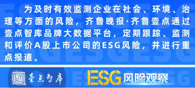 为及时有效监测企业在社会、环境、治理等方面的风险,齐鲁晚报·齐鲁壹点将通过壹点智库品牌大数据平台,定期跟踪、监测和评价A股上市公司的ESG风险,并进行重点报道。